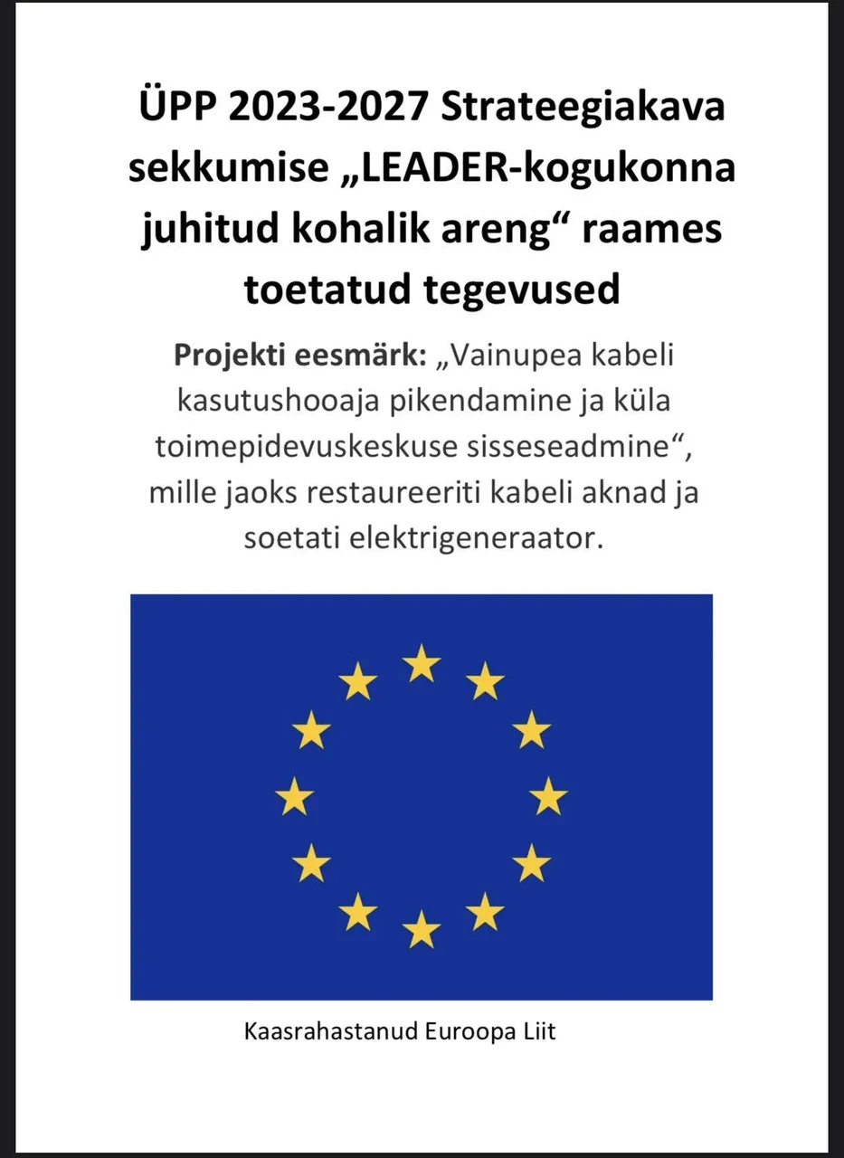 Kabelisse soetasime Leader-programmi toetusel ka elektrigeneraatori. Sellega seoses täname Priit Rubenit, kes tegi annetusena tasuta ka vajalikud kaabeldused ja elektritööd, et elektri puudumise kriisiolukorras oleks külas koht, kus vajadusel seadmeid laadida jms saaks teha.